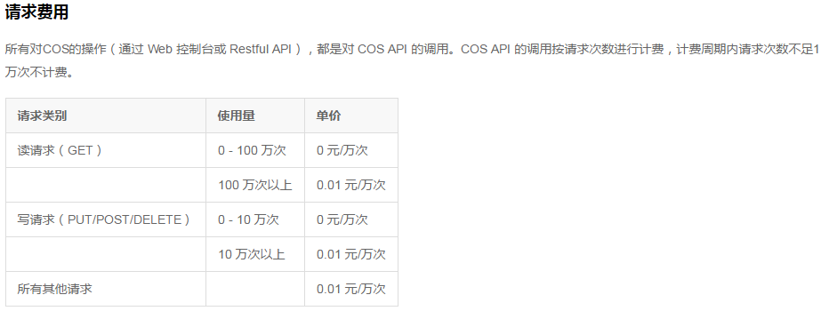 对象存储COS是一款后付费产品,每月 3-5 日生成上个月的账单并进行结算。所有用户拥有50G的免费存储空间,10G的免费IDC流量,10G的免费CDN回源流量,10万次PUT请求数和100万次GET请求数。超出部分按量计费,阶梯累进,更多内容,请点击查看文档>>