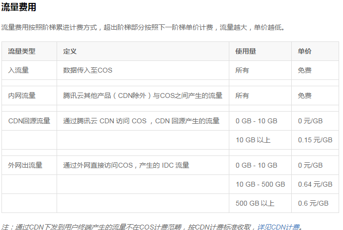 腾讯云的cos对象存储,免费容量50G,下载免费月流量 10G,上传流量免费,官方说法如下